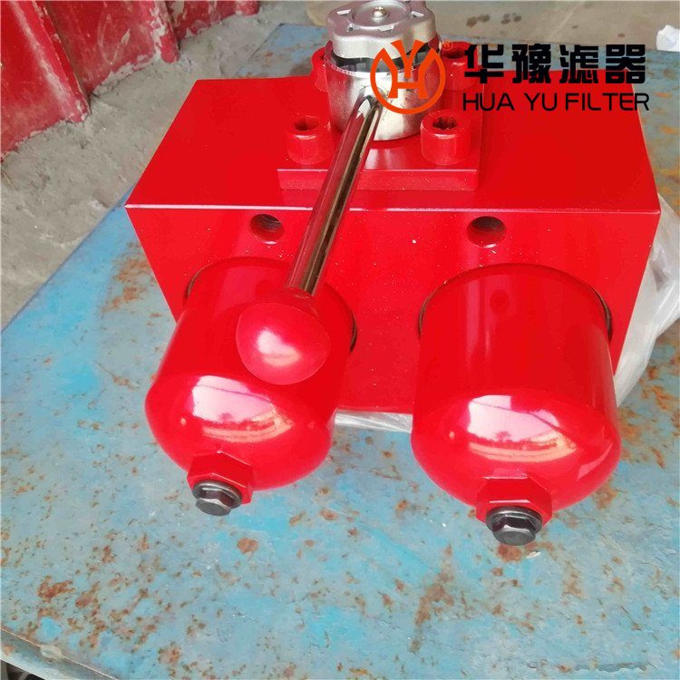 3、由兩個單筒回油過濾器通過一個可切換的三通球閥連接而成;