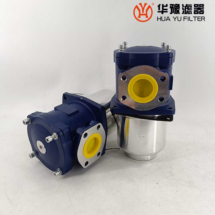 該過濾器的濾芯采用化纖過濾材質,具有過濾精度高,通油能力大,初始壓力損失小,納污量大等優點,并裝有壓差發訊器及旁通閥。當濾芯堵塞到進出油口壓差為0.35MPa時,便發出開關信號,此時應更換濾芯。如果不能馬上停機或無人來更換濾芯,裝在濾芯上部的旁通閥會自動開啟,以保護系統。